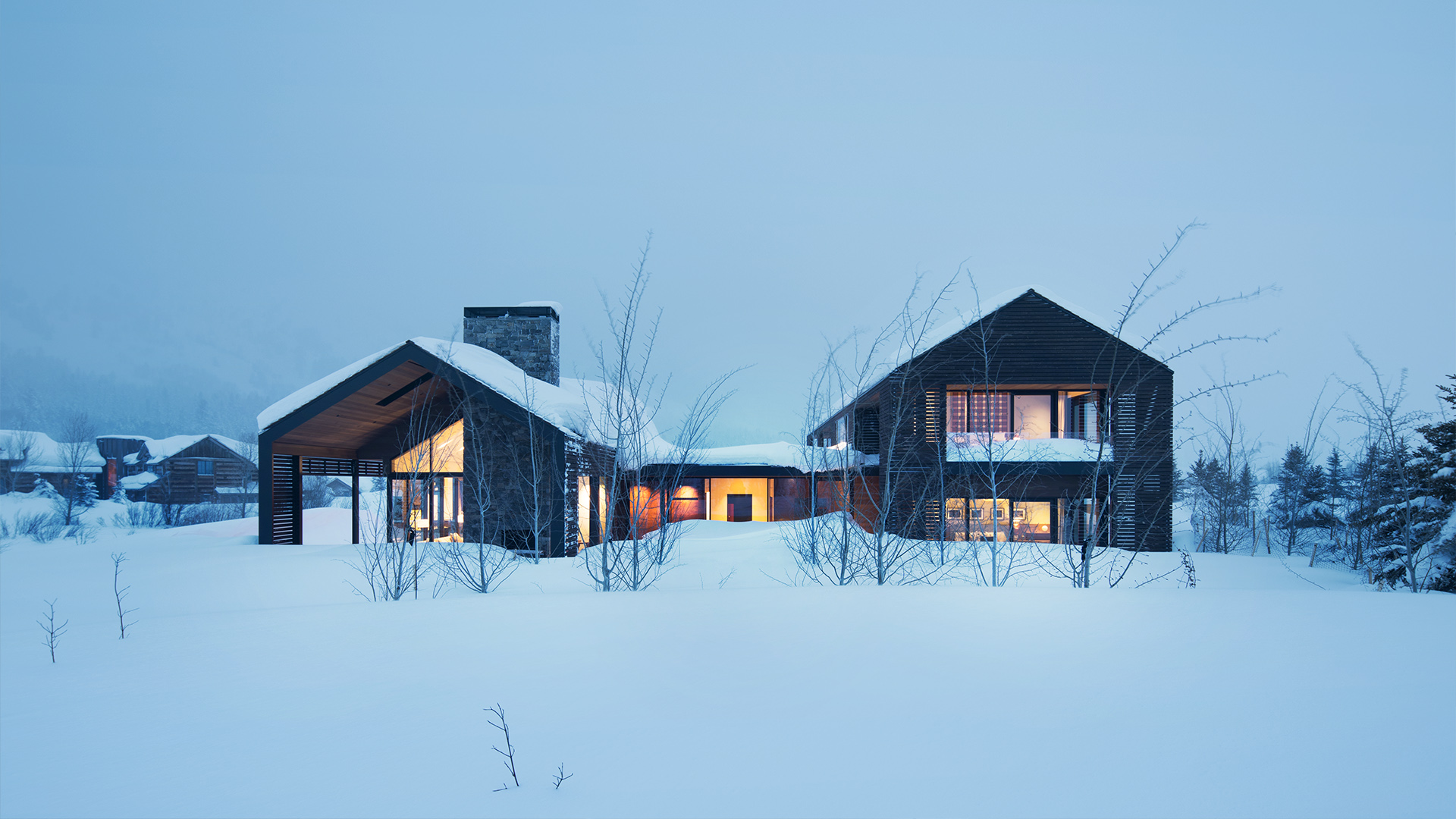The Lone Pine compound is sited to make the most of its majestic views; oriented to view neighbouring structures and an adjacent ski resort. The location is ideal for this weekend hideaway, for those that appreciate modern design sensibilities.