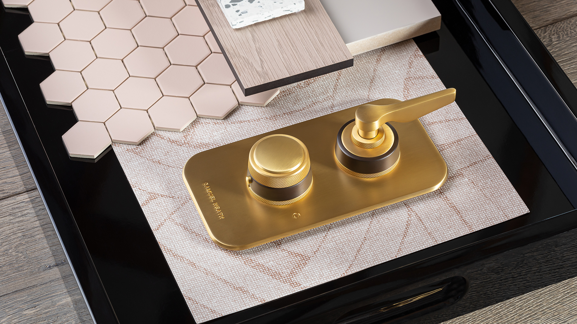 Rachel selected the T1001 thermostatic shower valve for this carefully tailored concept. Wing Lever control options exhibit tasteful purity of form, while knurled escutcheon detailing to controls are a details which add practical tactility. A combination of Brushed Gold Matt and City Bronze finish options also introduce exuberant colour with beautiful lustre, with a practical benefit of being more resistant to smudges and fingerprints than highly polished finishes.