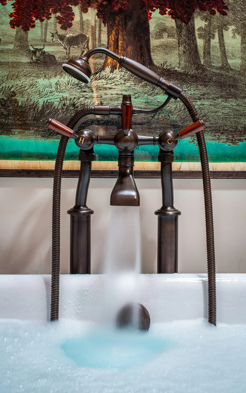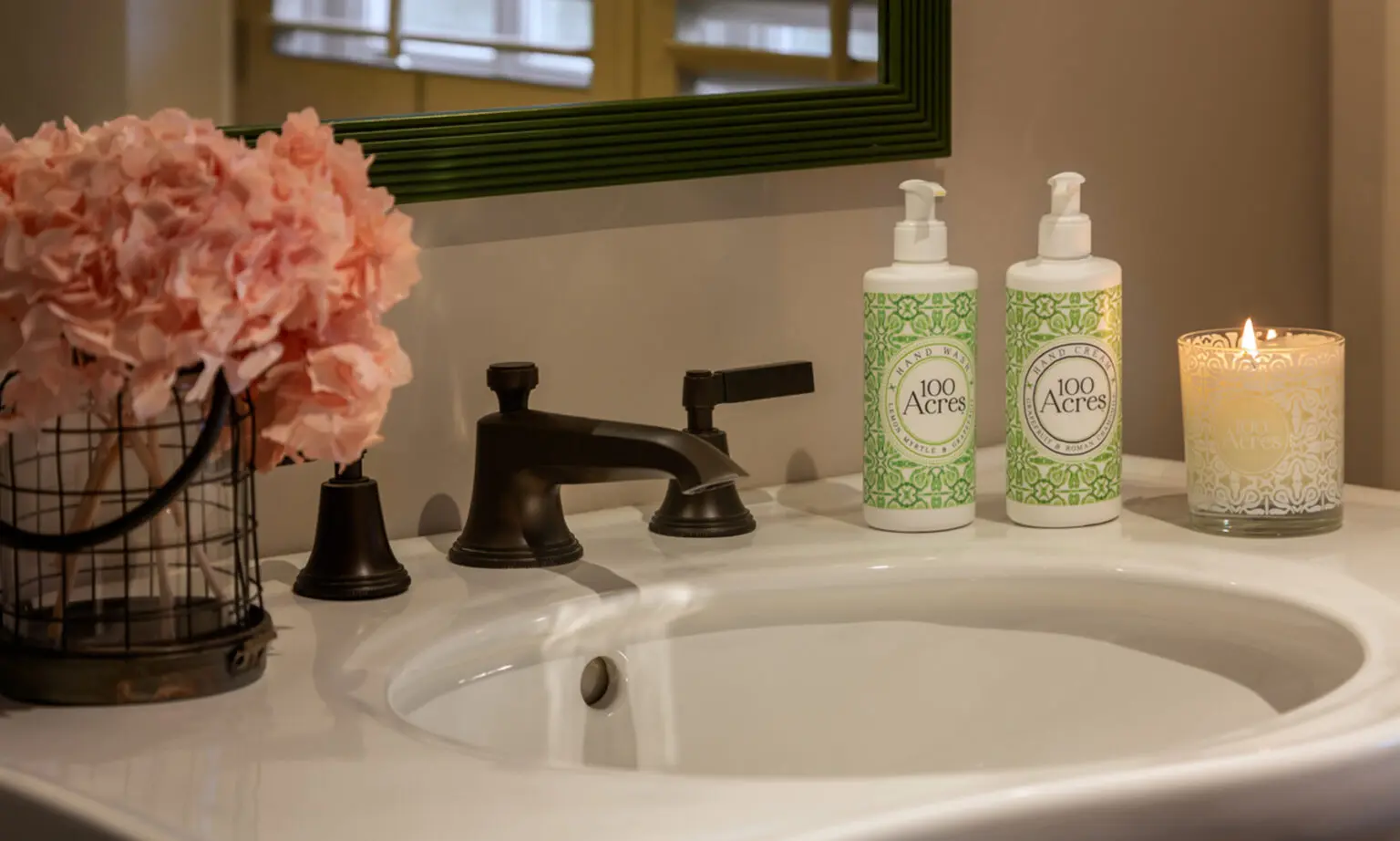 With considerable time spent cherry-picking the very best British craftsmen for the interiors, Georgie Pearman selected Samuel Heath bath & basin brassware in City Bronze to bring ‘rustic chic’ to every bedroom. The timeless design of the premium brass fixtures elevate the high-end effect of the interiors and through their superior performance, also assist in creating a relaxing guest experience.