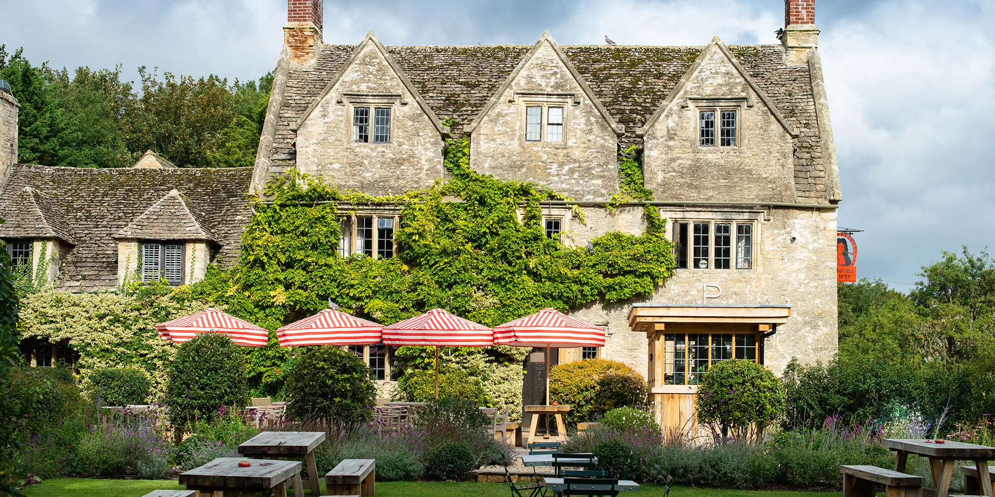 Tucked into the Cotswolds village of Clanfield, alongside country lanes and chocolate-box cottages, the candy-striped umbrellas of the Double Red Duke are easy to spot. This former 16th century Coaching Inn is the third pub renovation by husband and wife hoteliers Georgie and Sam Pearman, who have nurtured quite the hospitality portfolio with this unique hideaway.