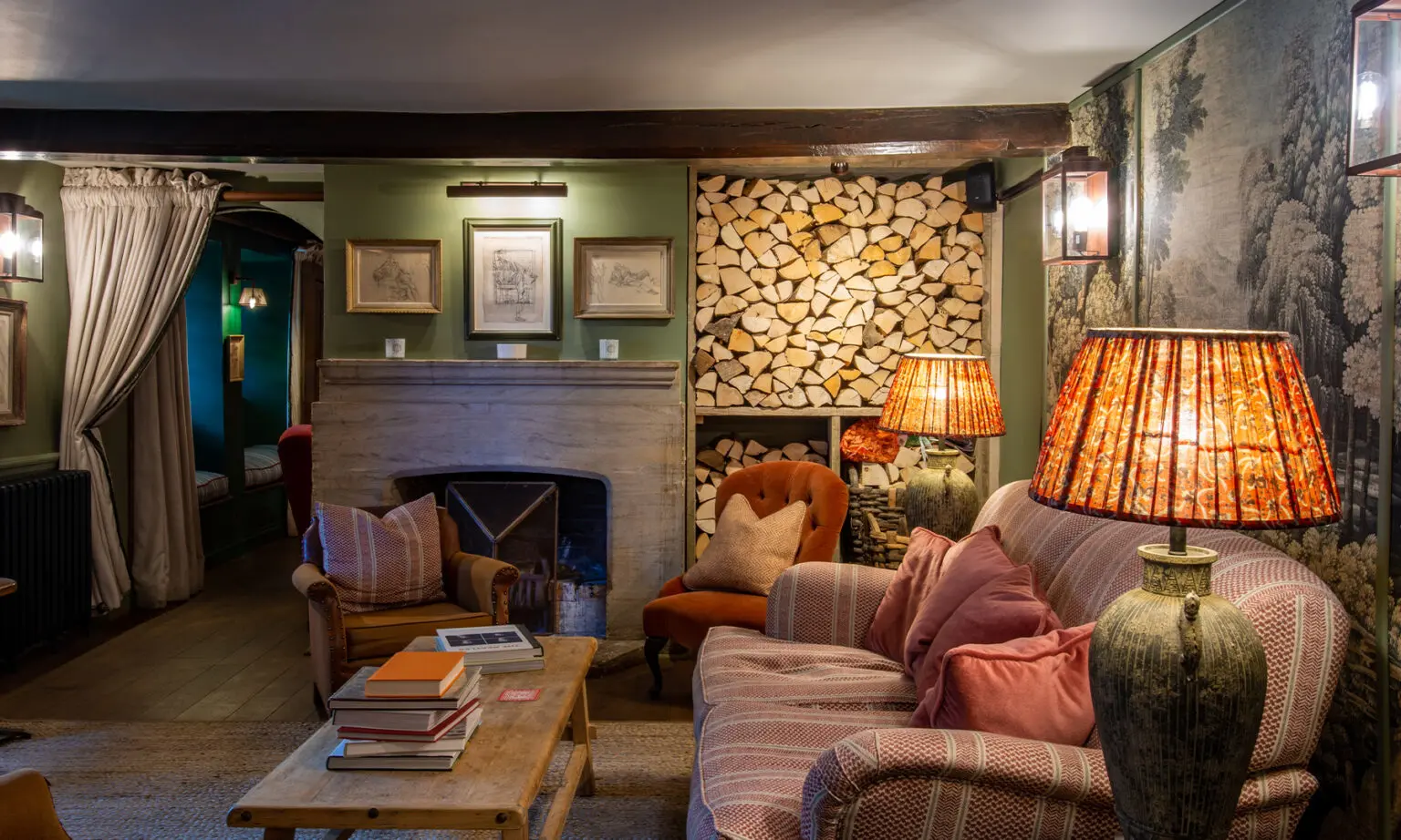 As with all renovations undertaken by the Pearman’s, the inn was refurbished to maintain its historic charm, with a trademark contemporary twist to appeal to city-living weekenders. Creating a ‘departure from the everyday’ was a top priority for the designers, in a way that feels warm and welcoming. Upon entering through its wisteria-clad doors, guests can find a rabbit warren of cosy snugs swathed in ruby red and emerald velvet, glass-roof dining areas with studded leather chairs and multiple original fireplaces.