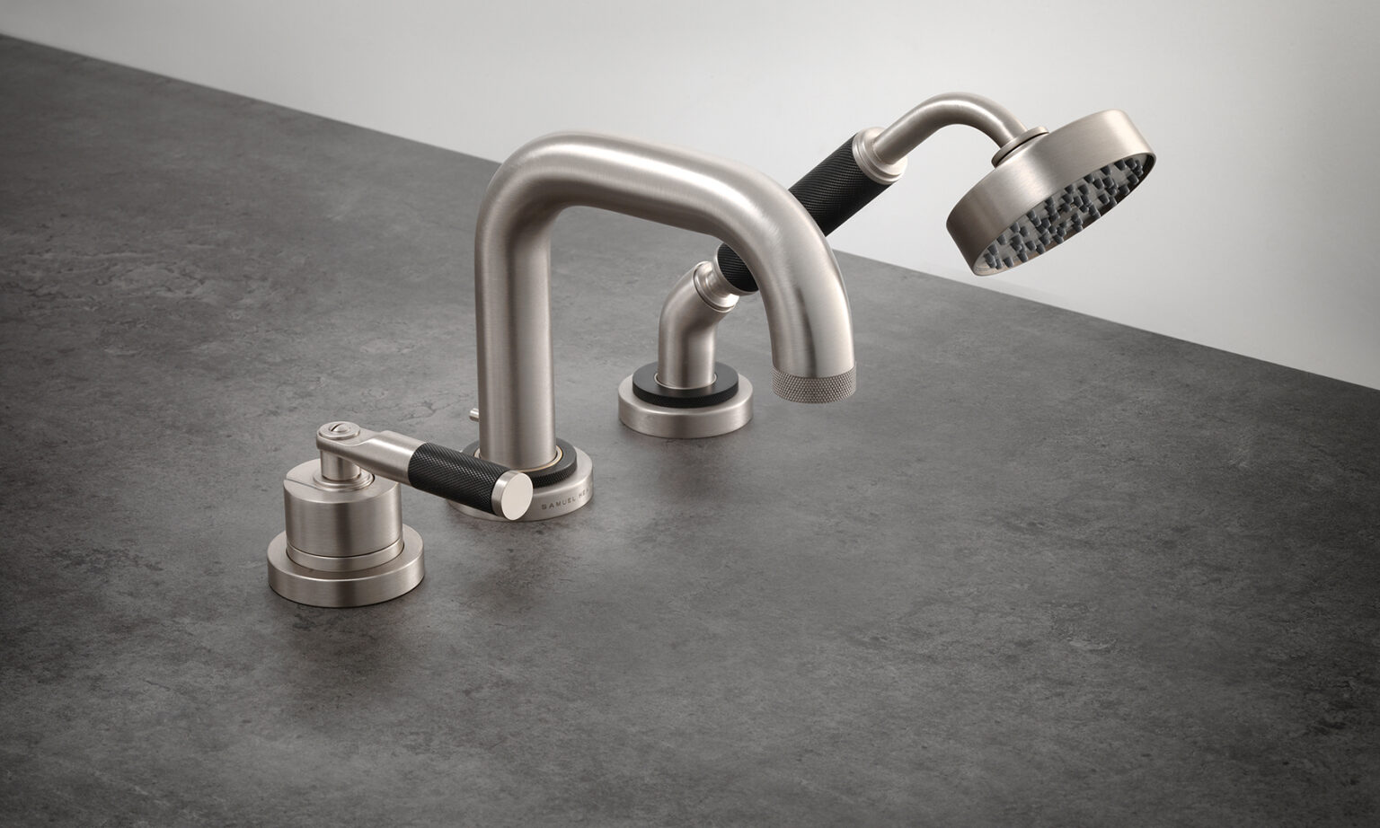 This finish combination is available for One Hundred and LMK collections and combines two popular contemporary finishes. The matt black chrome accents provide a stunning contrast to the brushed satin nickel. This combination remains unlacquered so the nickel will patina over time.