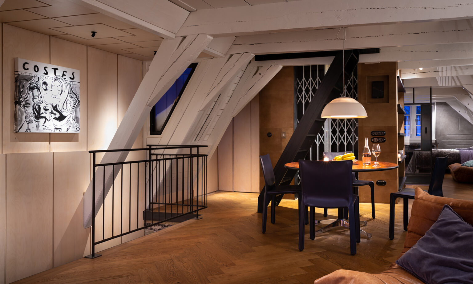 ‘Character, atmosphere and functionality’ are the pillars of Cris van Amsterdam’s studio approach and these are often portrayed by using ‘real’ materials with strong durability. The philosophy is clearly reflected within the apartments designs, achieved by preserving the historical architecture of the canal house and using cement and wood wall coverings to update the space with a classic, industrial feel.