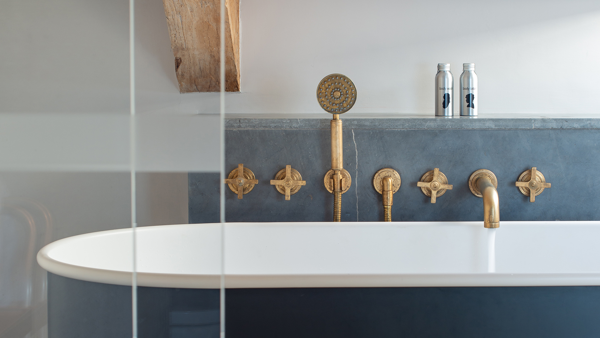 Patina brass taps have been known to add further character to industrial style bathrooms, particularly those that include matching rustic elements such as walnut or antik wood washstands and marble countertops. Alternatively, a natural brass shower with a darker, aged finish can be a striking addition to vintage designs in saturated Farrow & Ball paint colours with Shaker style cabinets and floor tiles with retro patterns. A set of patina taps within an Urban setting can also have the ability to evoke a demure look when matched with golden accessories; enticing those that appreciate the finer details. An unlacquered finish is available across our brass tap, shower, bathroom accessory and architectural hardware collections for seamless continuity of an interior.
